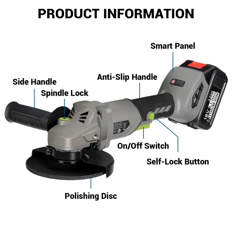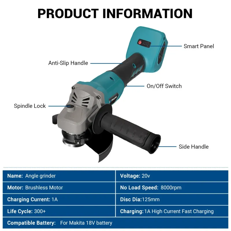 Drillpro 20V Brushless Blue EU Plug/Gray US Plug 8000rpm 125mm Electric Angle Grinder