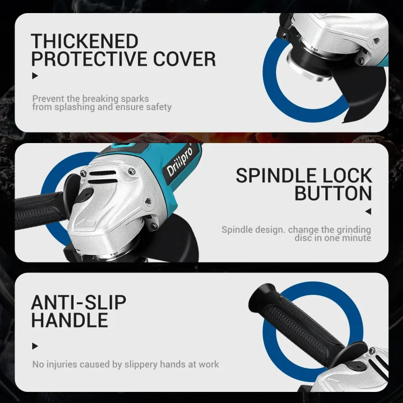 Drillpro 800W 125mm 18V Cordless Electric Polisher 8500rpm 4 Speeds High Power Polishing Machine