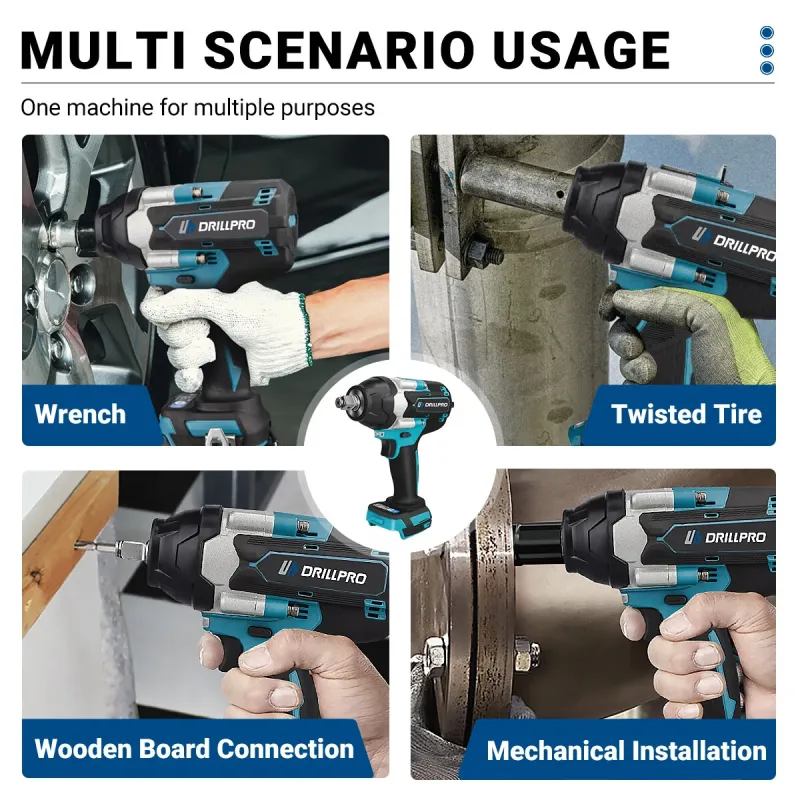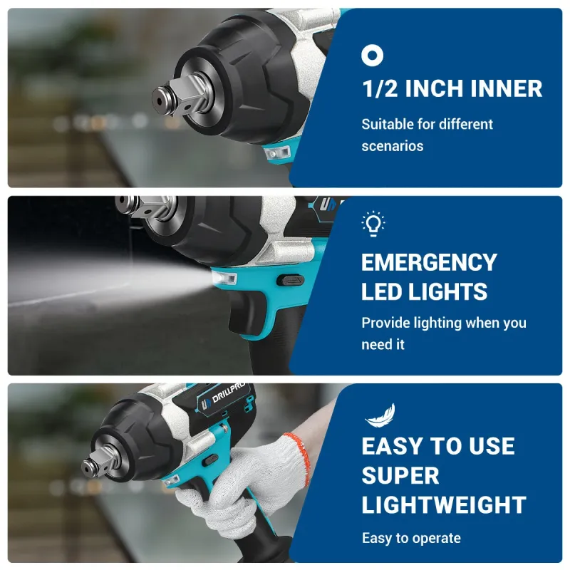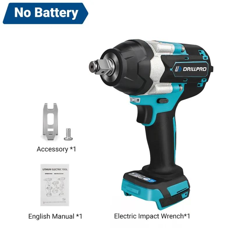 Drillpro Electric Impact Wrench High Torque 1800N.M 1/2 Inch Drive 7200 RPM Variable Speed with Forward Reverse Gears Compatible with 18V Battery Power Tool for DIY Projects and Professionals