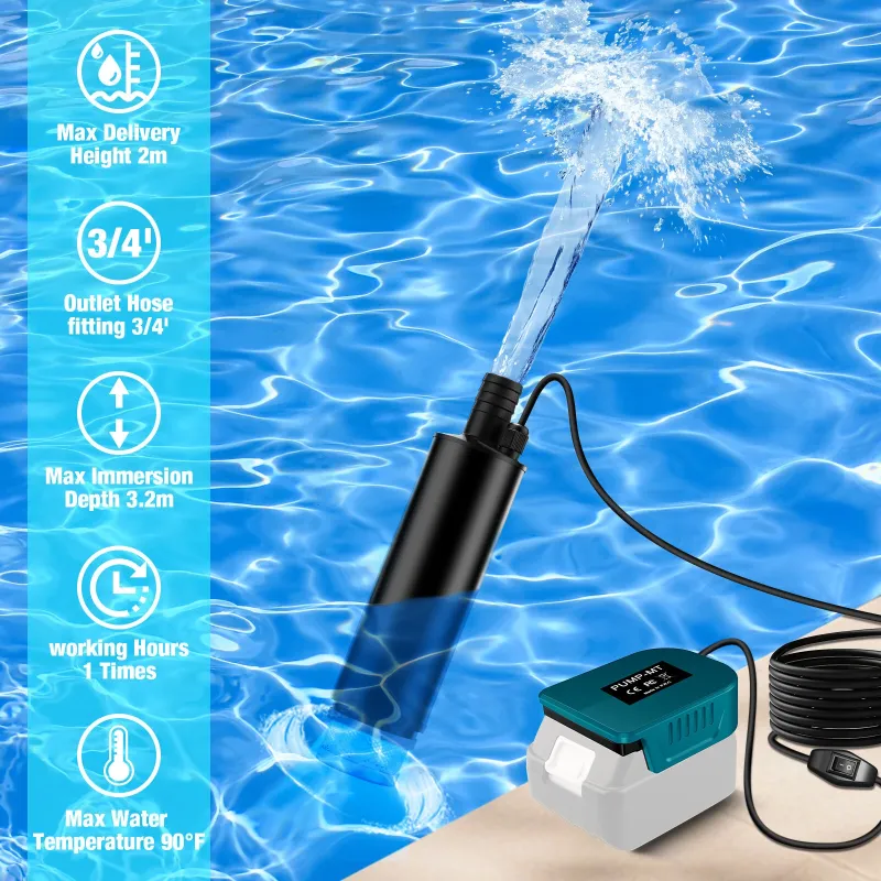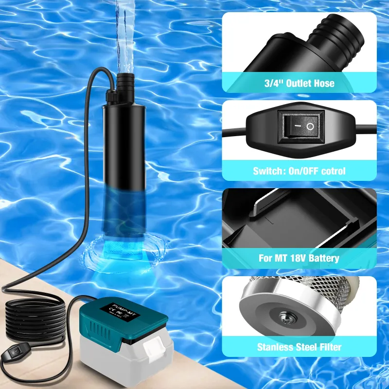 Portable Water Transfer Pump 100W Brushless Motor for Makita Battery 635GPH 20V Cordless Garden Pool Basement Flood Drainage