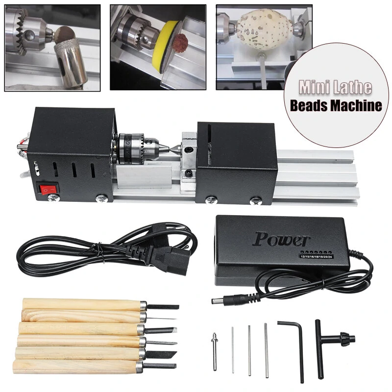 EU Plug Wood Lathe Set Mini Beads Machine Miniature Rotary Tool Multifunction Lathe DIY Woodworking Pearl Lathe Grinding and Polishing Beads