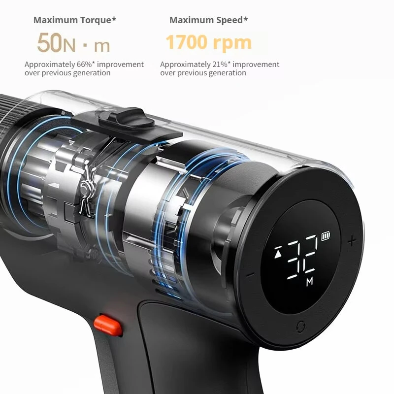 Xiaomi Mijia Brushless Electric Drill 2 50Nm Torque 1900mAh Battery Type-C Wood Metal Concrete Multi-functional Smart Power Tool Adjustable Speed High-performance Motor