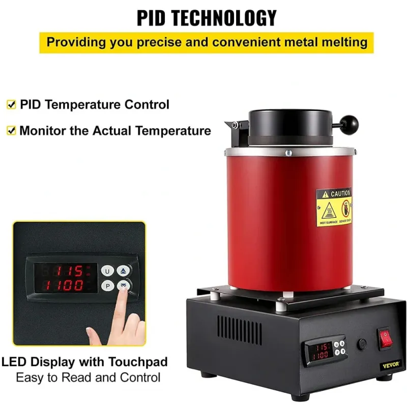 1400W Digital Electric Gold Melting Furnace with 1KG & 3KG High Purity Graphite Crucible - High-Efficiency Fast Heating up to 2000F/1100C Ideal for Metal Melting like Gold Silver Copper