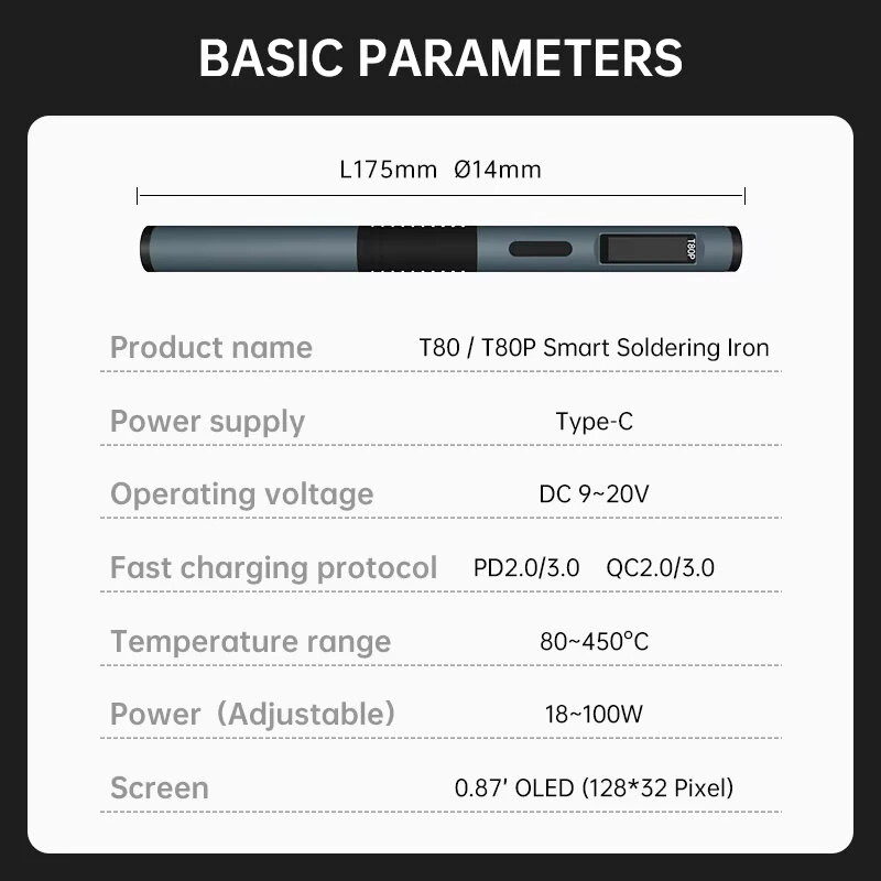 ALIENTEK T80 T80P Smart Soldering Iron Type-C Power Supply 18-100W Adjustable Fast Heat OLED Display Temperature Control 80-450C Portable Electric Soldering Tool