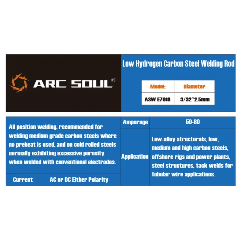 ARC SOUL AWS E7018 Welding Rods Ideal for Medium Grade Carbon Steels Cold Rolled Steels All Position Welding 2.5mm Diameter Packs of 25 40 60 High Quality Welding Performance
