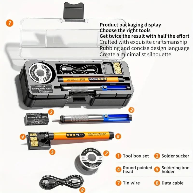 Cordless USB Digital Soldering Iron Adjustable Temperature Type-C Interface Fast Heating Soldering Tool Portable Welding Kit for Circuit Board Electrical Repair Crafting Jewelry 30 Minutes Operation