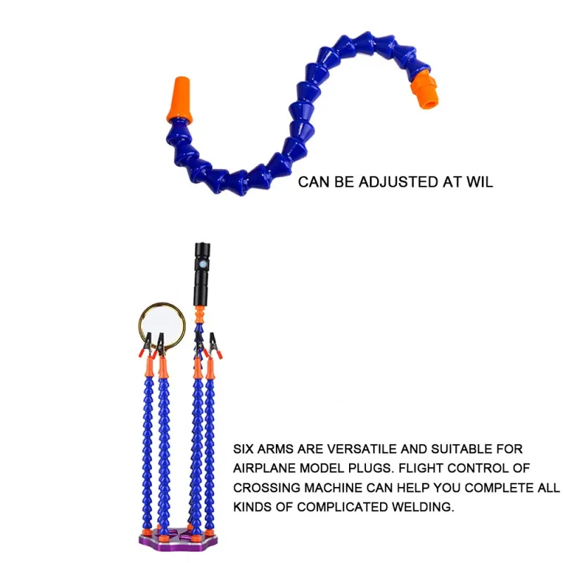 Multi-Functional Soldering Helping Hand with 6 Pc Flexible Arms Aluminum Alloy Soldering Station with Fan Magnifying Glass and Flashlight Magnifier PCB Welding Repair Station