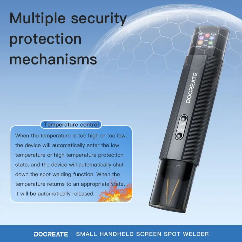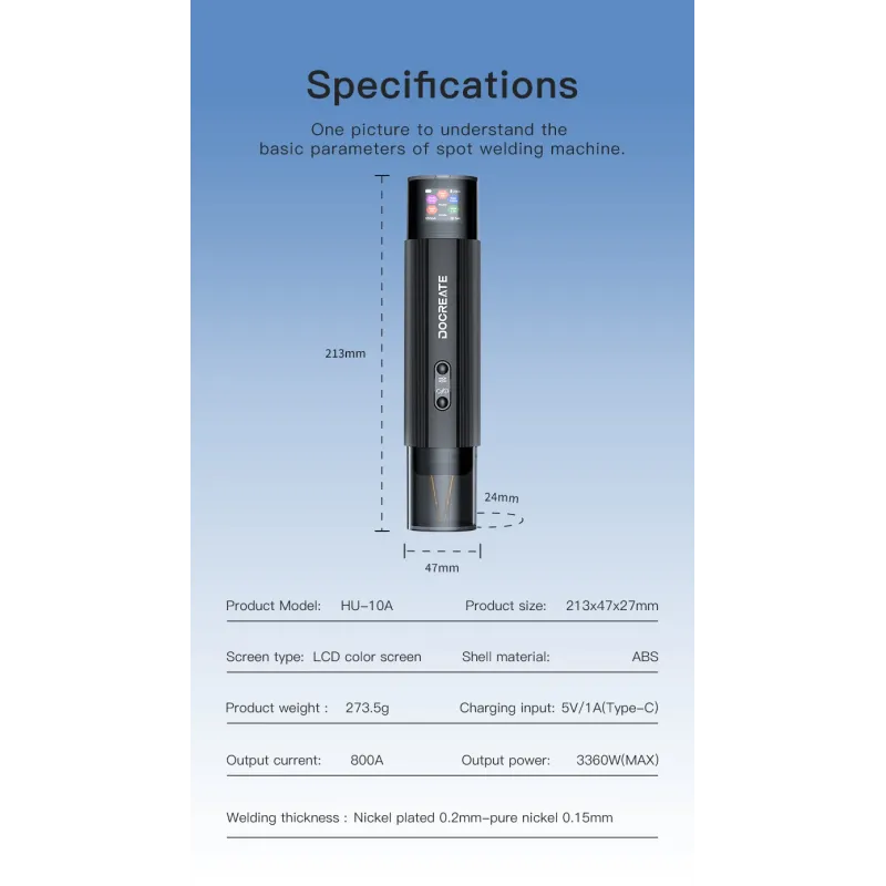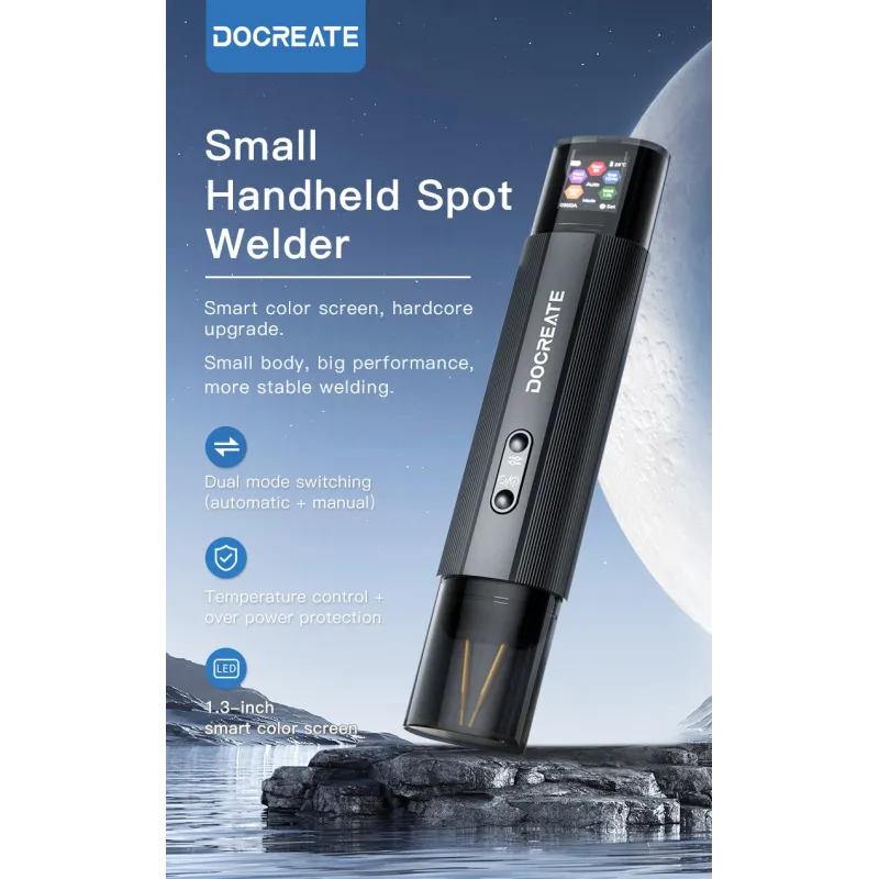 Docreate HU-10A Handheld Spot Welder 1.3-Inch LCD Screen Dual Mode 800A 3360W High Power Portable Battery Welding Tool