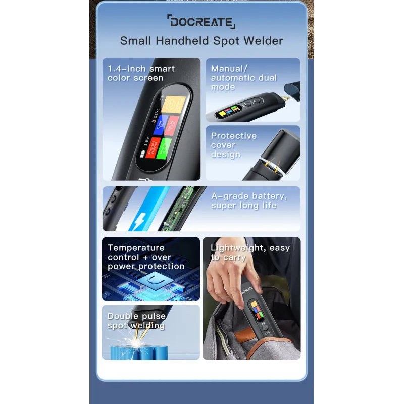 HU-10B Spot Welder 1.4 Inch LCD Screen Dual Mode 800A Output Compact Handheld Welding Machine Type-C Charging