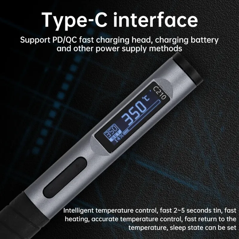 Intelligent Portable Welding Pen Type-C Interface 18-100W Adjustable Power OLED Display Fast Heating Temperature Control 80-450 176-842