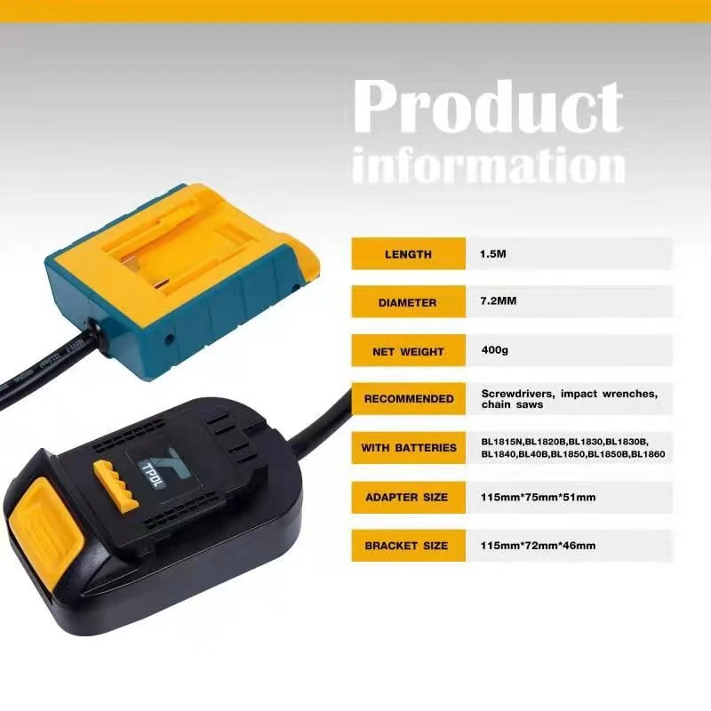 1.5m EU Plug Battery Extension Cord Tool Suitable for Makita for DeWalt 18V Lithium Batteries