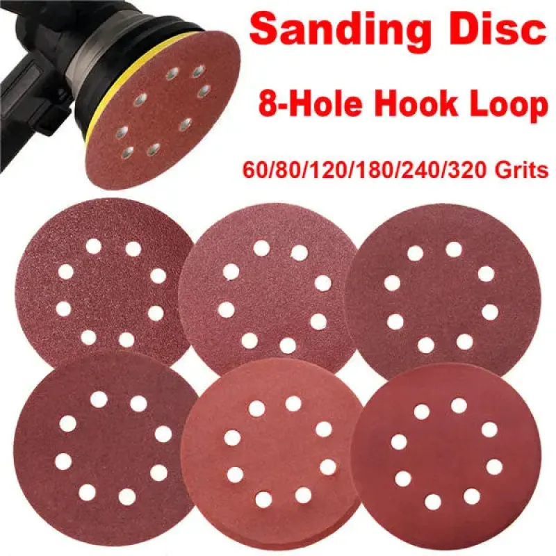 60Pcs 5 Inch 8-hole Hook Loop Sanding Discs Sandpaper 60/80/120/180/240/320 Grit