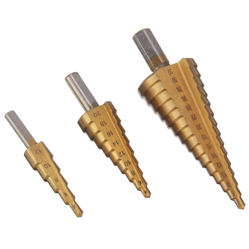 6PCs HSS Step Drill Bit Sets Straight Titanium Coated Cone Hole Cutter Automatic Center Punch Spiral Twist Saw Drill Bit