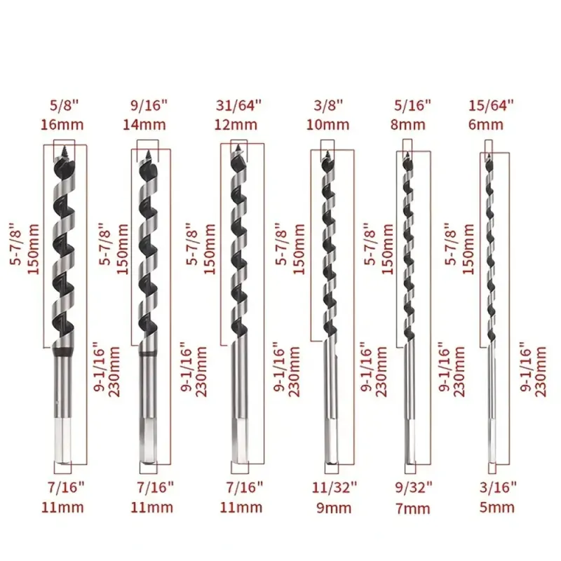 6PCS Twist Wood Drill Bit 6-16mm Woodworking Center Drill Bit Set For Woodworking Tools