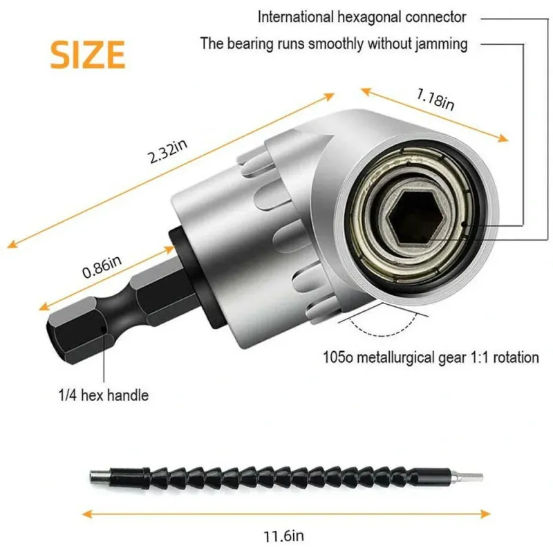 Drillpro 16Pcs/Set Flexible Drill Extension Hex Shank Drill Nut Driver Bit Set Bendable Drill Bit Extension+Universal Socket Adapter+Screwdriver Bit+Right Angle Drill Extension