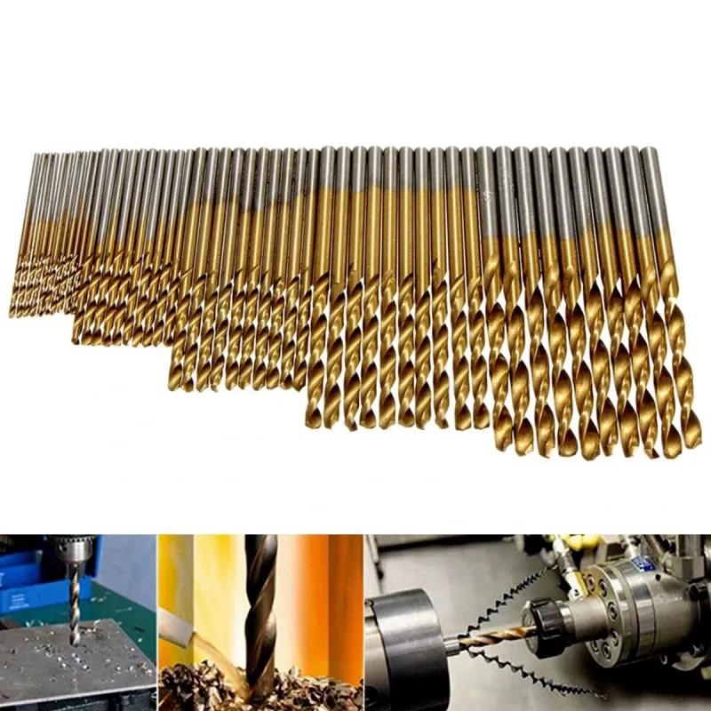 Drillpro 50PCS 1/1.5/2/2.5/3mm HSS Titanium Coated Twist Drill Bits High Speed Steel Drill Bit Set