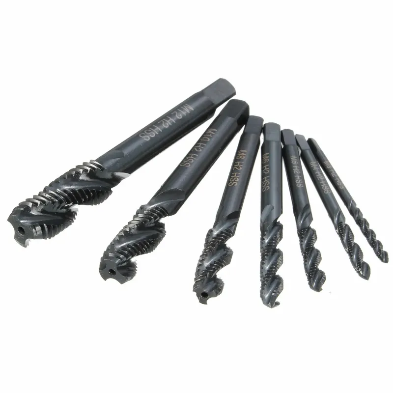 Drillpro 7pcs M3-M12 HSS Nitriding Coated Screw Tap Metric Right Hand Spiral Screw Thread Tap
