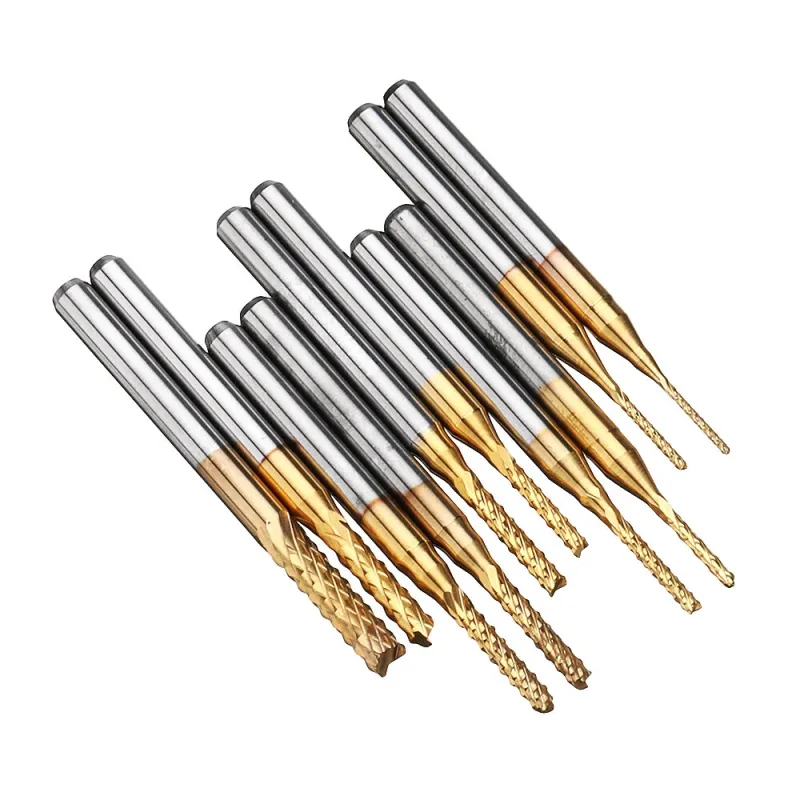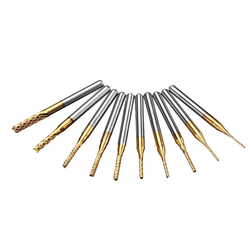 Drillpro DB-M1 10Pcs 0.8-3mm Titanium Coated Engraving Milling Cutter Carbide Bits