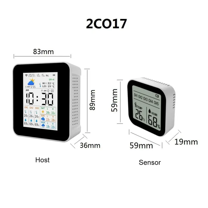TUYA 2CO17 Smart Weather Station Wireless Indoor Outdoor Hygrothermograph 2.8inch Color Display WiFi Temperature Humidity Sensors TUYA App Integration