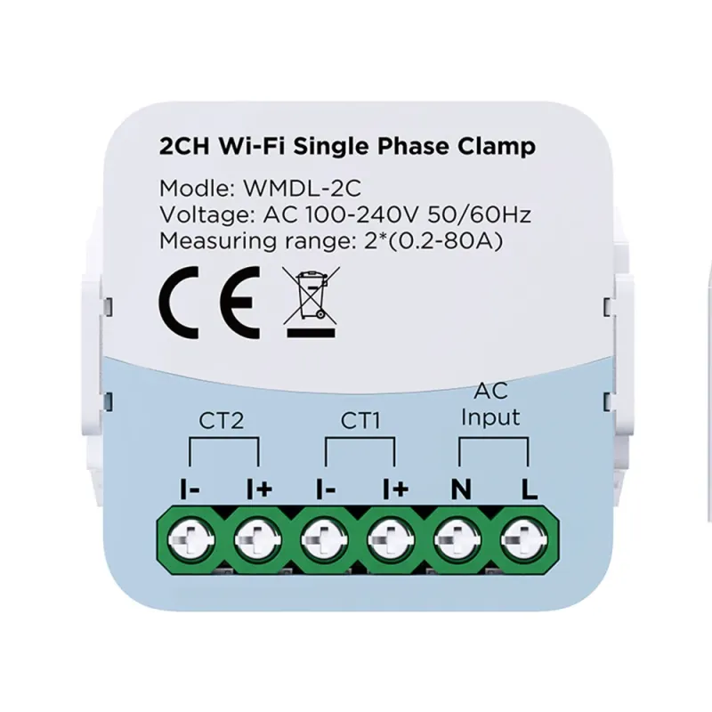 Tuya WiFi Smart Energy Monitor WMDL-2C AC 100-240V 50/60Hz Real-Time Power Usage Tracker High Accuracy 5 Multi-Channel Support Compact Design Home Power Management System WiFi Connectivity
