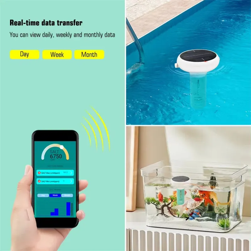 Tuya Zigbe WiFi Pool Water Quality Tester 7-in-1 Monitoring pH Chlorine Salinity Solar USB Charging App Control