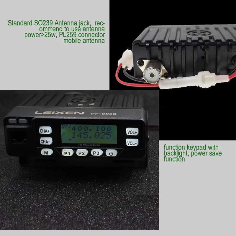 VV-898S Dual Band Mobile Transceiver 144/430MHz 25W Output Power IP55 Water Resistant 199 Channel Two Way Radio Portable Communication Device Outdoor