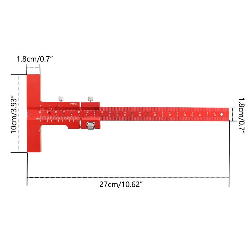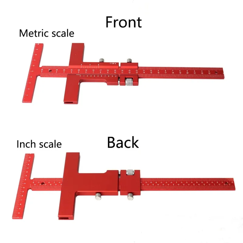 Woodworking Scriber Gauge Aluminum Alloy Sliding Marking Gauge T-Square Scribing Measuring Marking Framing Ruler Tool for Carpenter Layout and Measuring