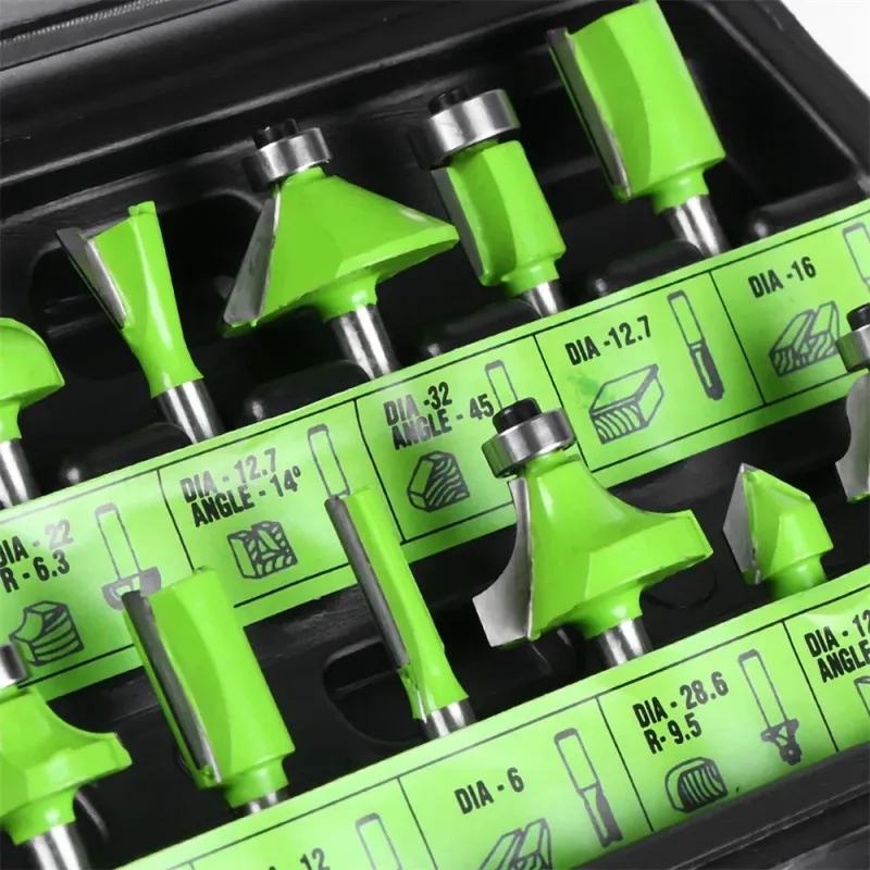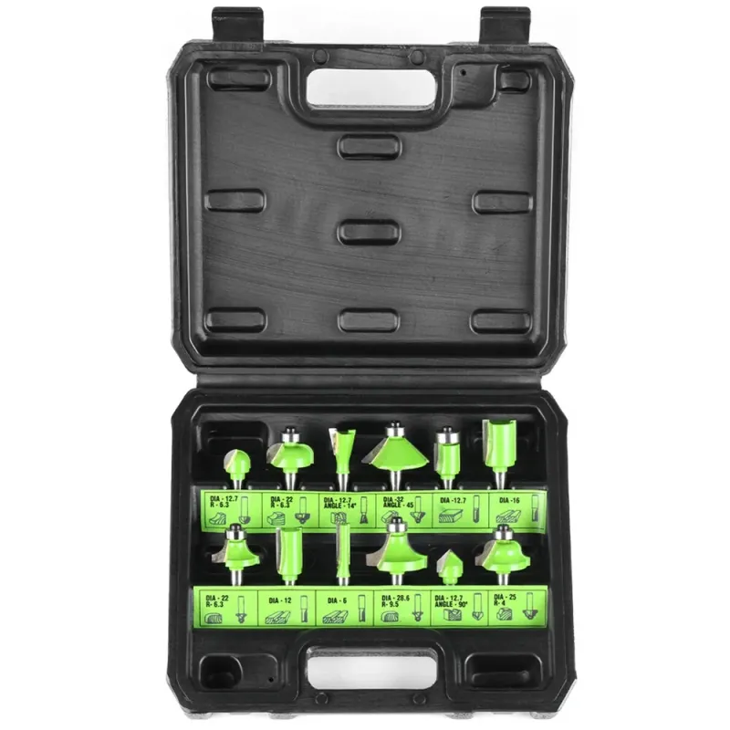 12PCS Router Bit Set 1/4 Inch Shank Tungsten Carbide Woodworking Milling Cutter for Hardwood Plywood Particle Board Engraving Machine