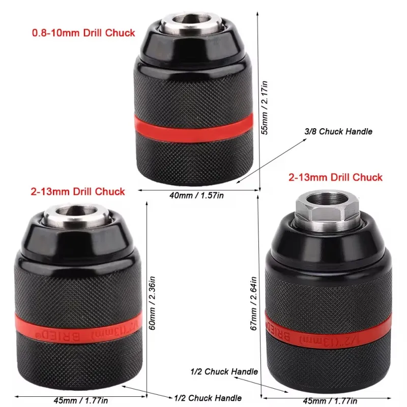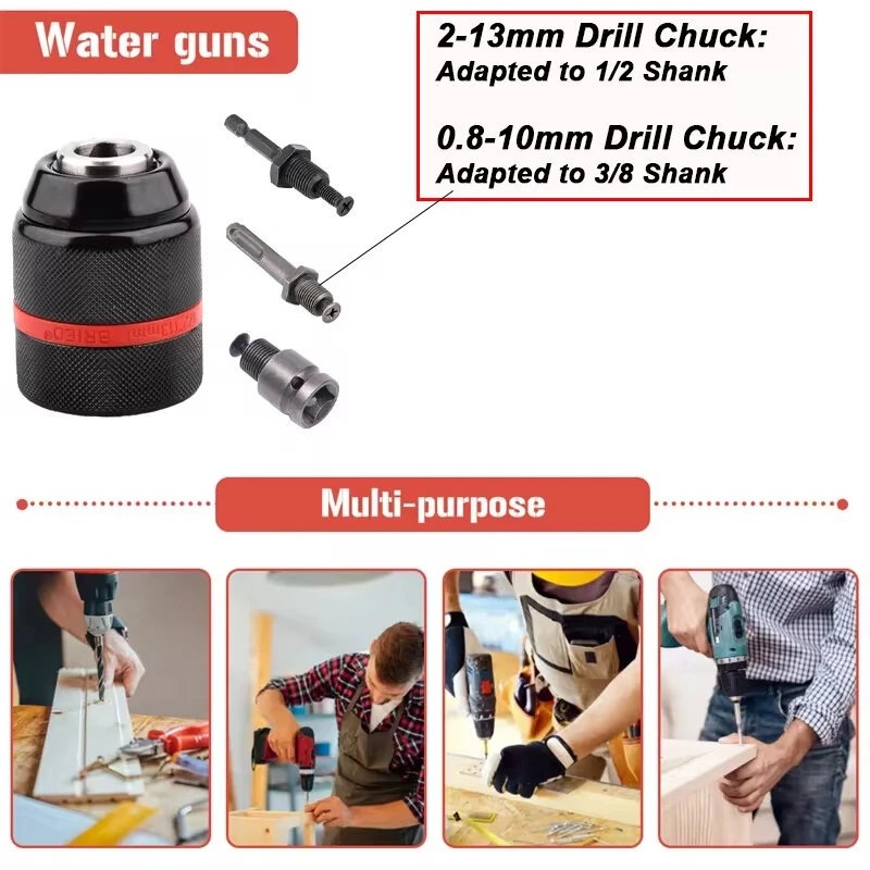 13mm Threaded Keyless Metal Drill Chuck, Hex Shank/SDS/Square Quick Grip Adapter, Chuck for Drill Bit Screwdriver Tap&Sockets