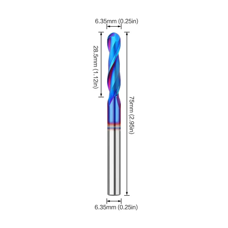 1/4 Inch/6.35mm 8mm Shank Spiral Up Cut Ball Nose End Mill Router Bit with Nano Blue Coating Milling Cutter Tungsten Carbide Flutes