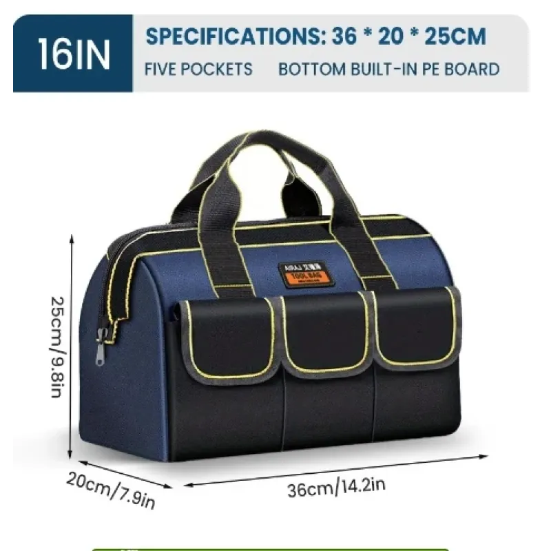 16 Inch 1680D Oxford Multifunctional Tool Bag Waterproof Wear-Resistant High Capacity Electrician Storage Bag