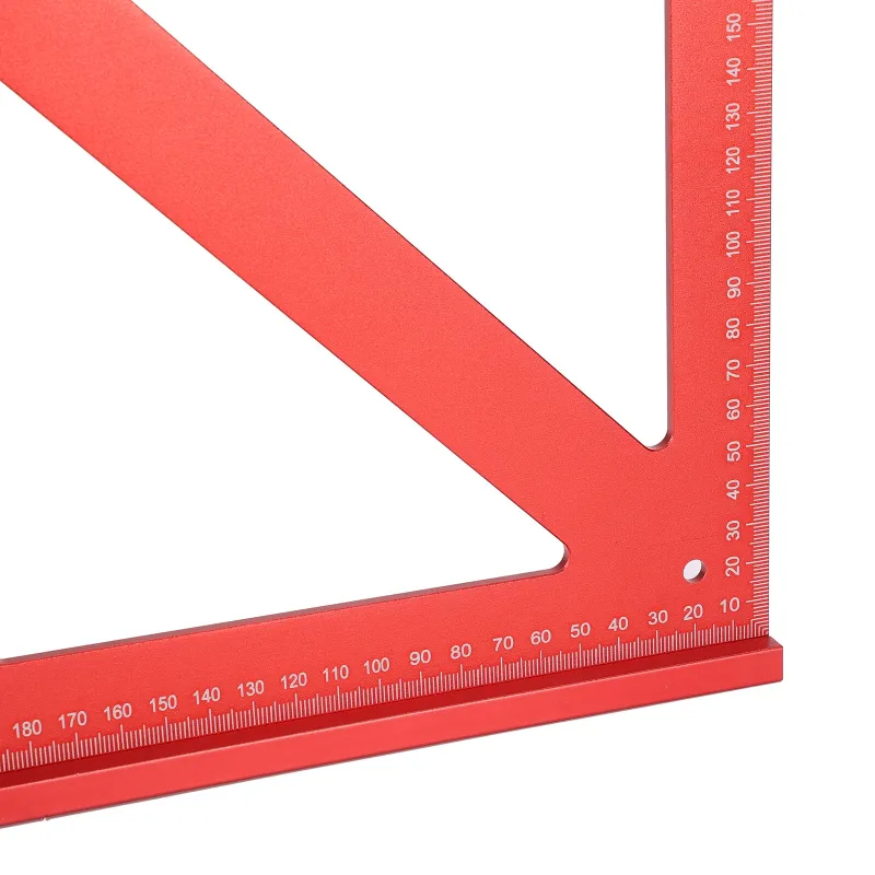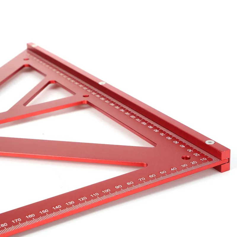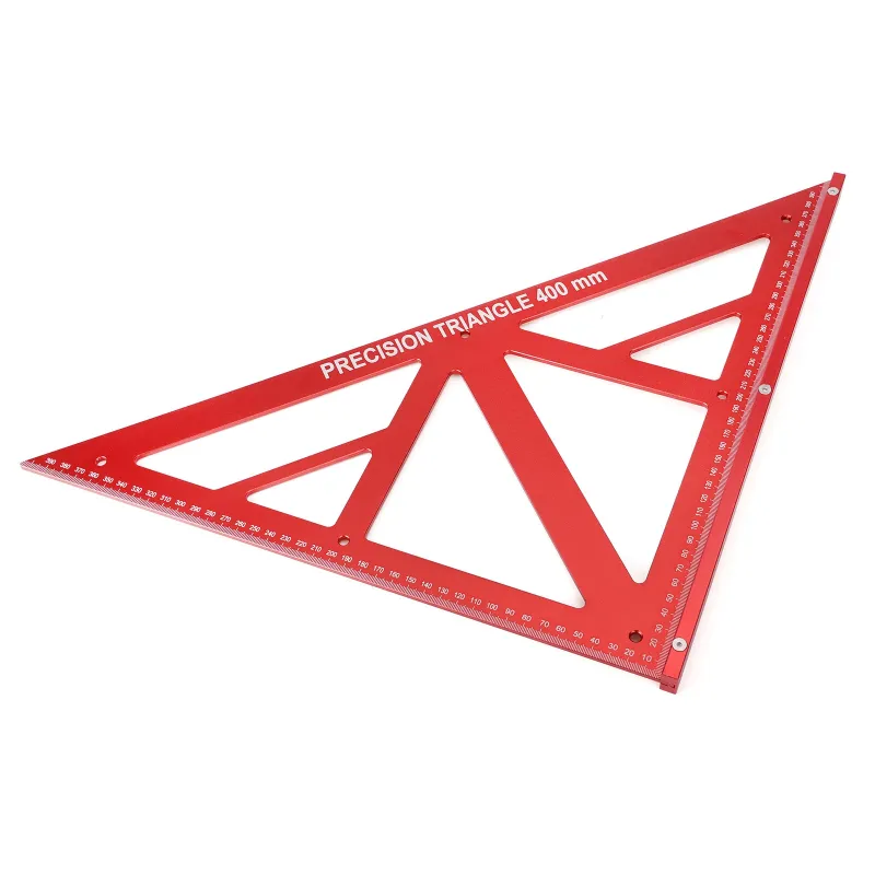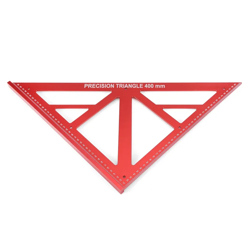 16 Inch 400mm Woodworking Triangle Measuring Ruler Aluminum Alloy Red High Precision 90/45 Degree Angle Clear Metric Scale for Measuring Drawing