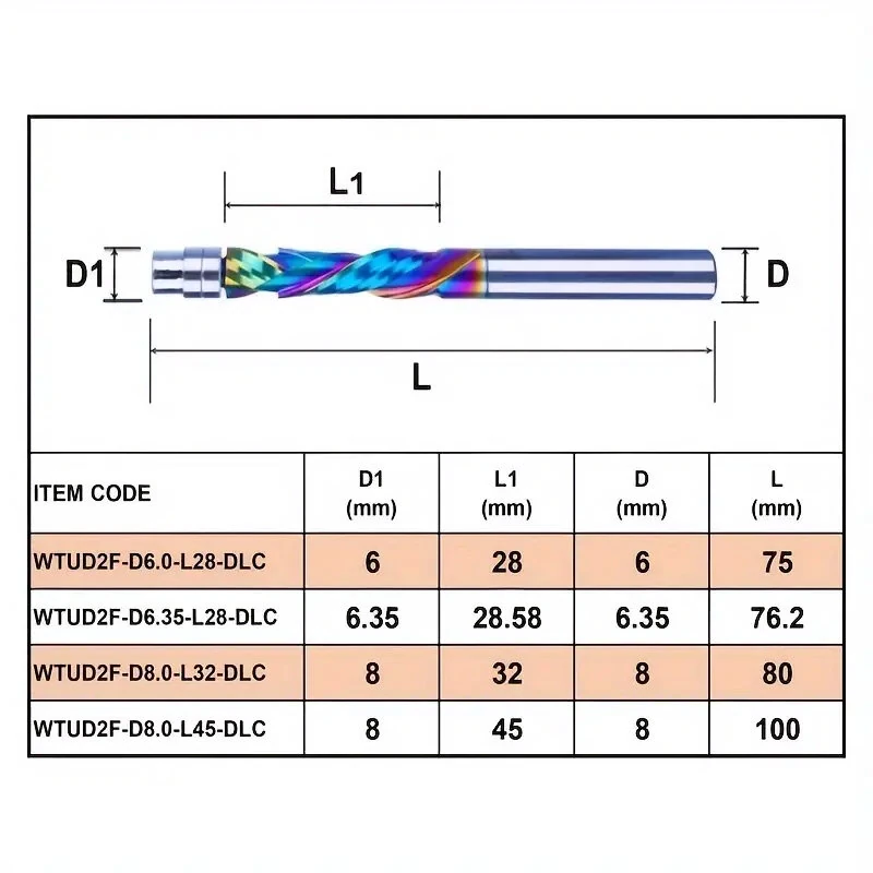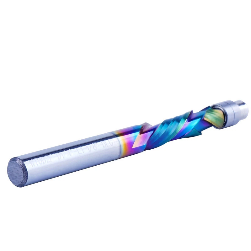 1pc DLC Coating Milling Blade Solid Carbide Bearing Guided Trim Bit 2 Flutes Spiral Flush Trim 8MM Shank Woodworking End Mill