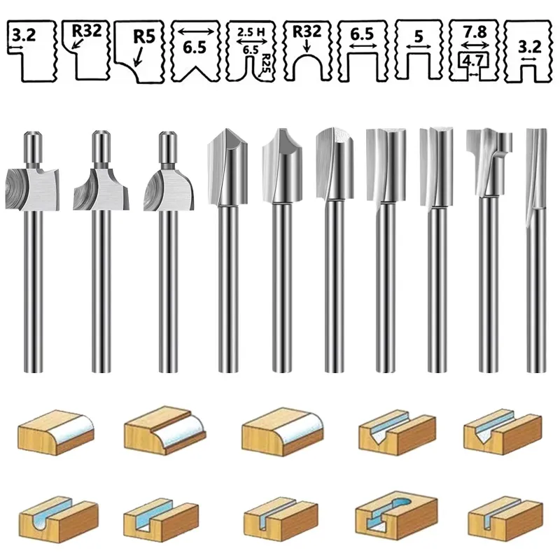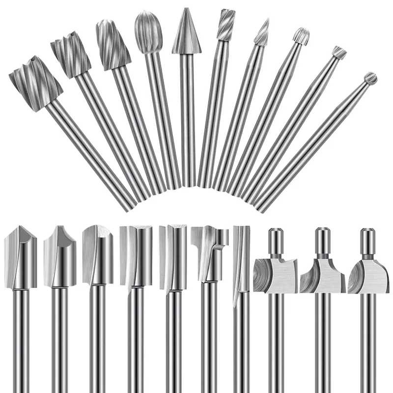20 Piece HSS Woodworking Rotary File Set Universal 3mm Shank Compatible with Most Rotary Tools for Carving Engraving Shaping Hollowing