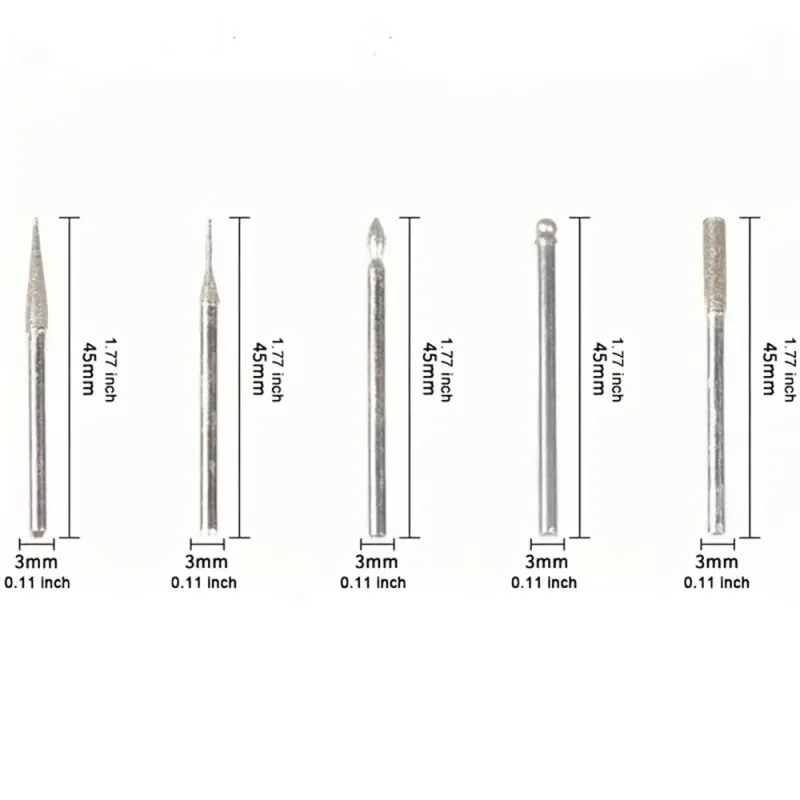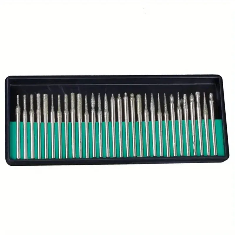 30PCS Diamond Burr Bits Set Rotary Tools 3mm or 2.35mm Shank Metal Woodworking Carving Shaping Engraving Jewelry Making Tool