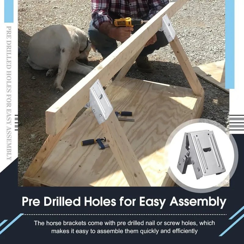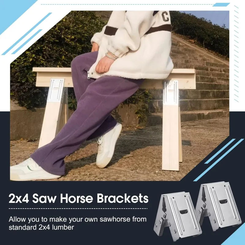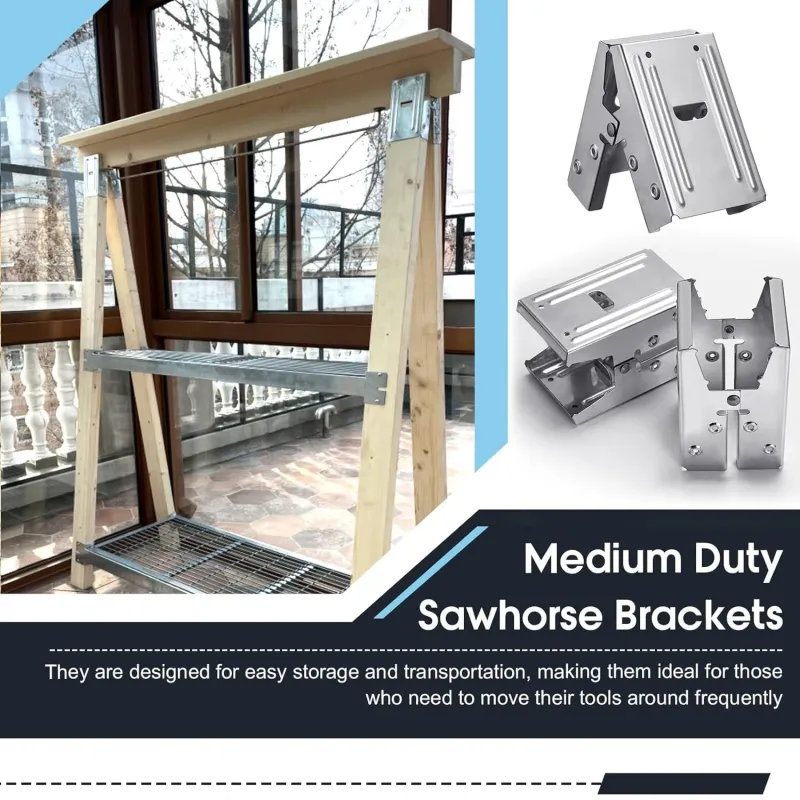 4pcs Steel Sawhorse Brackets Galvanized Metal 220lb Capacity Heavy Duty Carbon Steel Fits Standard 2x4 Wood Compact Portable Rust Resistant Easy Assembly Multi Functional