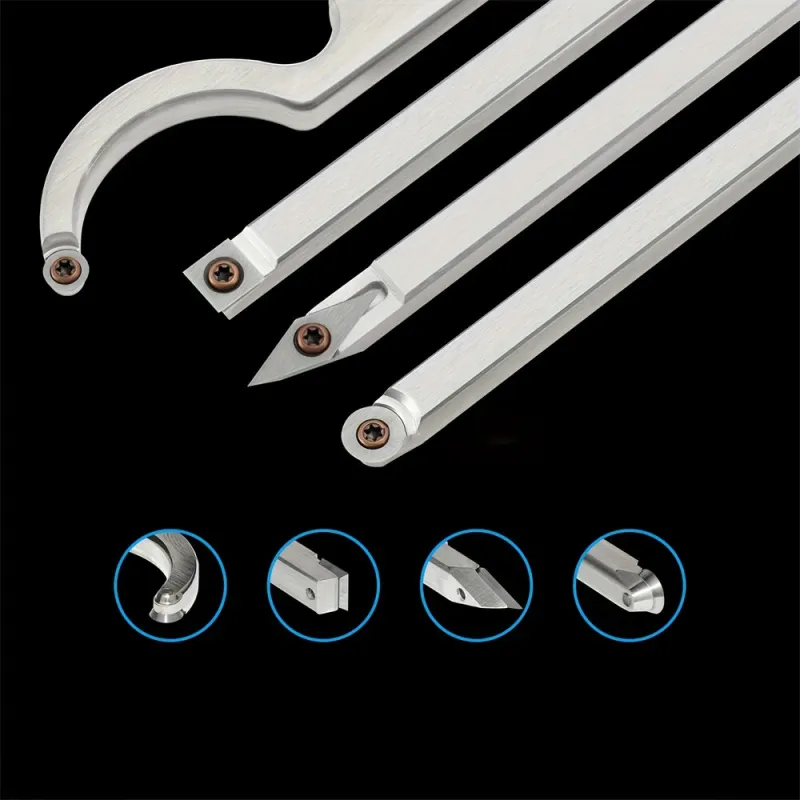 4pcs Woodworking Chisels Set Woodturning Carbide Lathe Tools Lathe Roughing and Finishing Hollow Tool