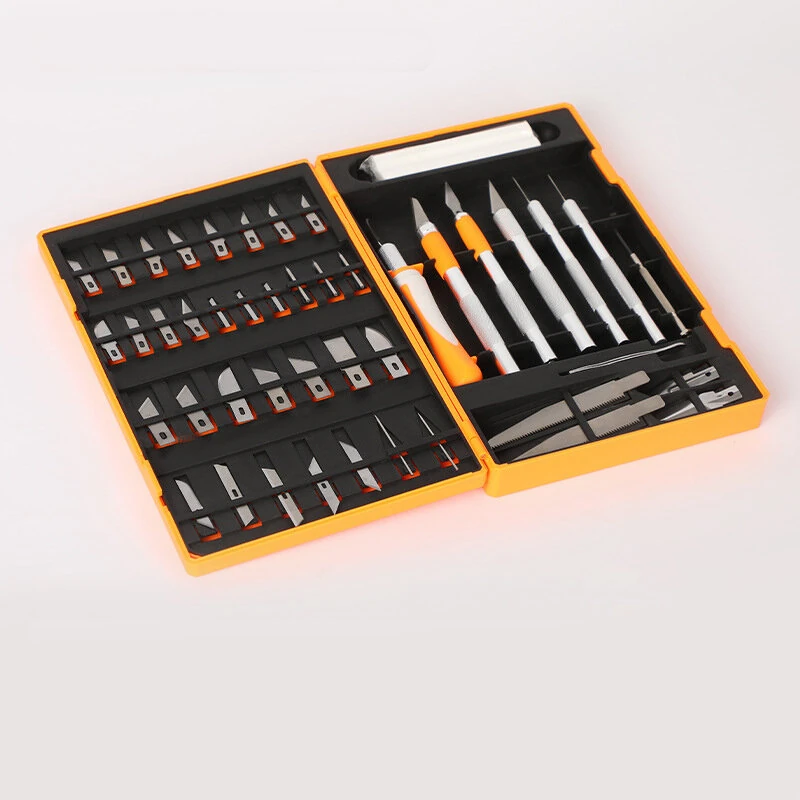 50 Pcs Aluminum Non Slip Handle Craft Knife Set SK2 Carbon Steel Versatile Precision Cutting Tools Engraving Art Supplies Compact Storage Case Crafting Tool Set