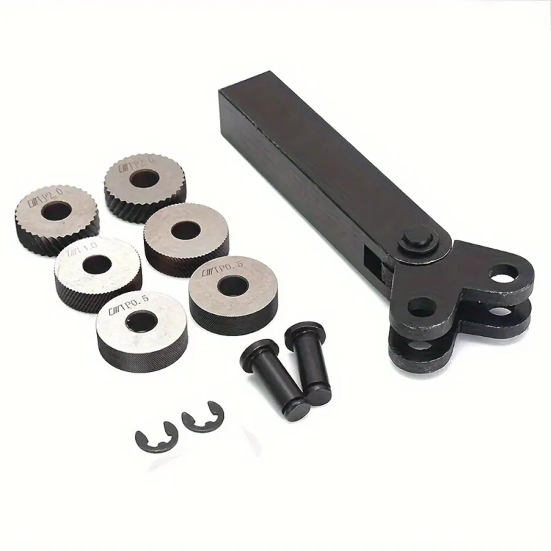 7pcs Steel Dual Wheel Knurling Tool Set with Diagonal Linear Knurl Wheel 0.5/1/2mm Pitch