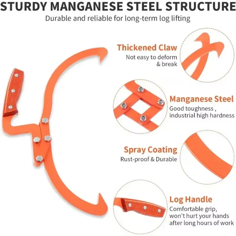 8/13/20inch Heavy Duty Stainless Steel Log Lifting Tongs 330 lbs Capacity Secure Hook Grip for Firewood Collection Brush Clearing Outdoor Wood Handling Tools
