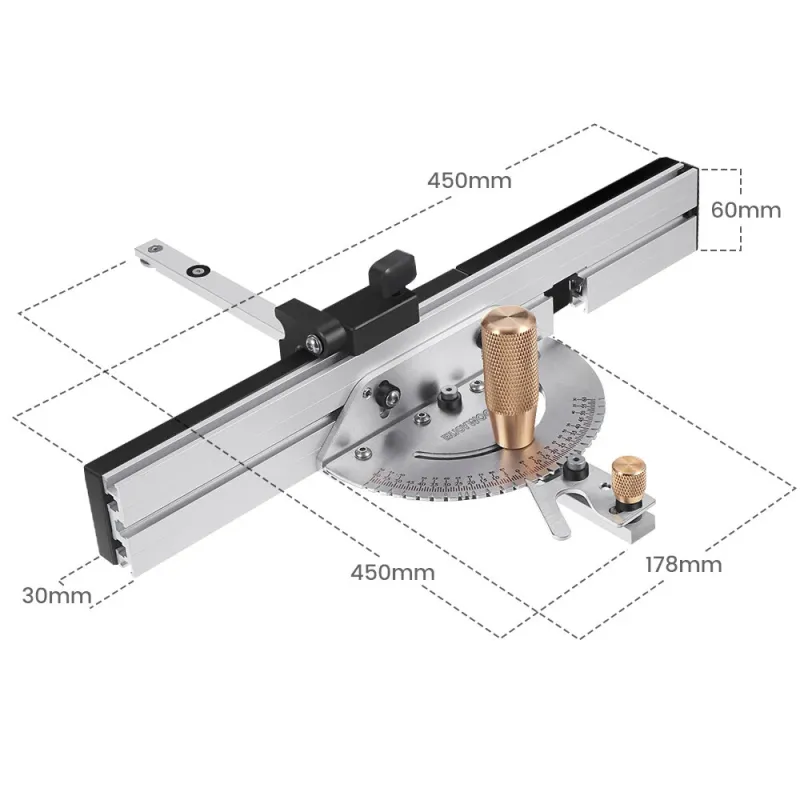 ENJOYWOOD Brass Handle 450mm 27 Angle Miter Gauge With Box Joint Jig Track Stop Table Saw Router Miter Gauge Saw Assembly Ruler For Woodworking Tools