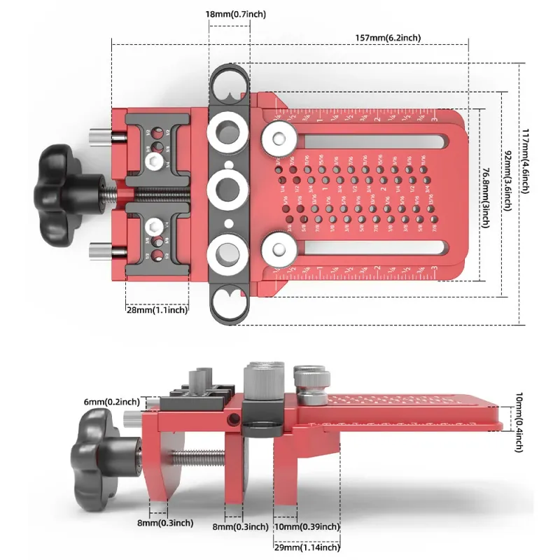 ENJOYWOOD Doweling Jig Hole Puncher Drill Guide Tool with Metric and Imperial Scales Precise Alignment Slots