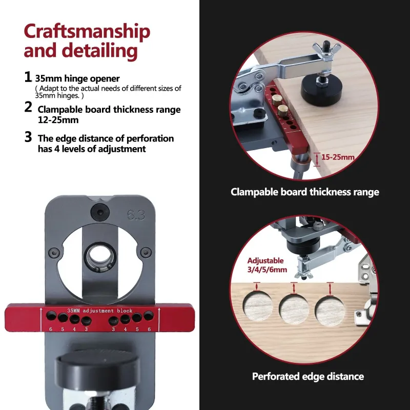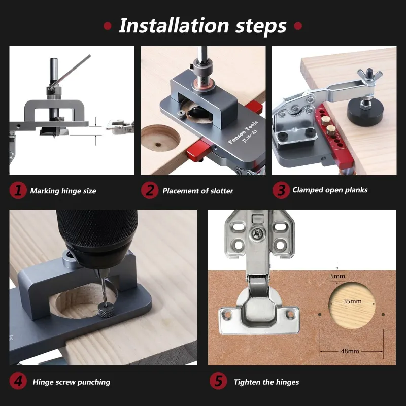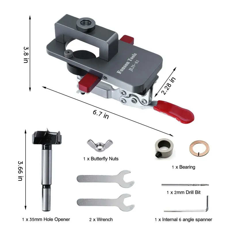 Fonson Tools 35mm Concealed Hinge Jig Drilling Guide Door Hinge Jig for Woodworking Door Cabinet Hinges Mounting Tool