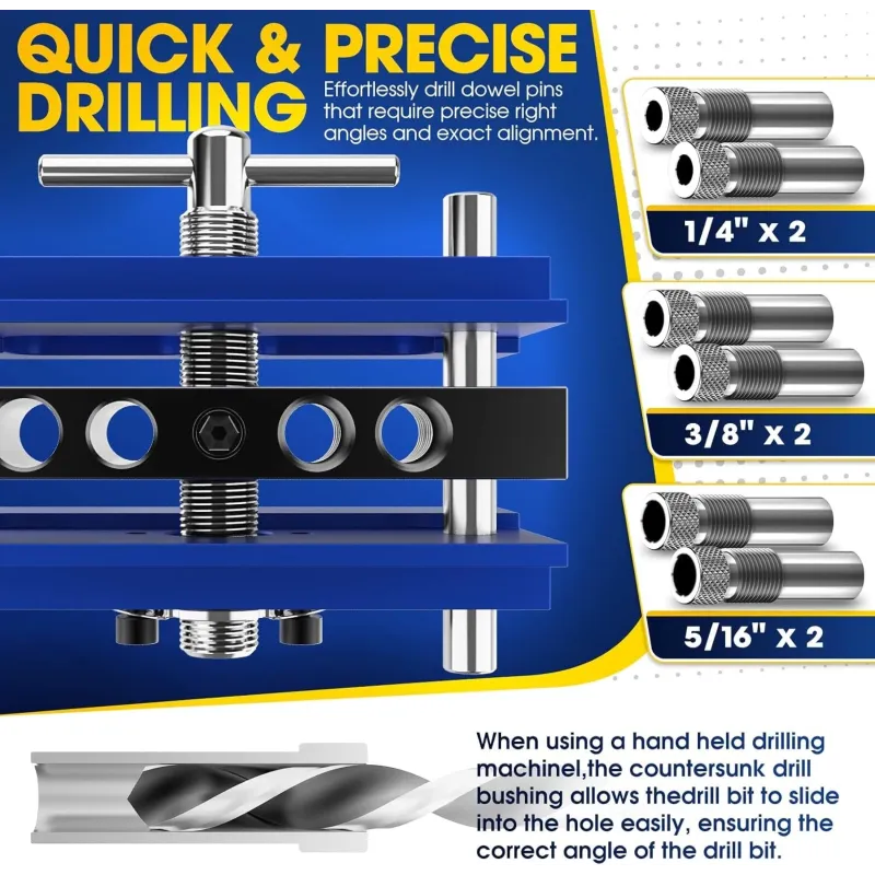 Metric/Imperial Scale Self-Centering Doweling Jig Kit Drill Jig For Straight Holes Biscuit Joiner Set With 6 Drill Guide Bushings Adjustable Width