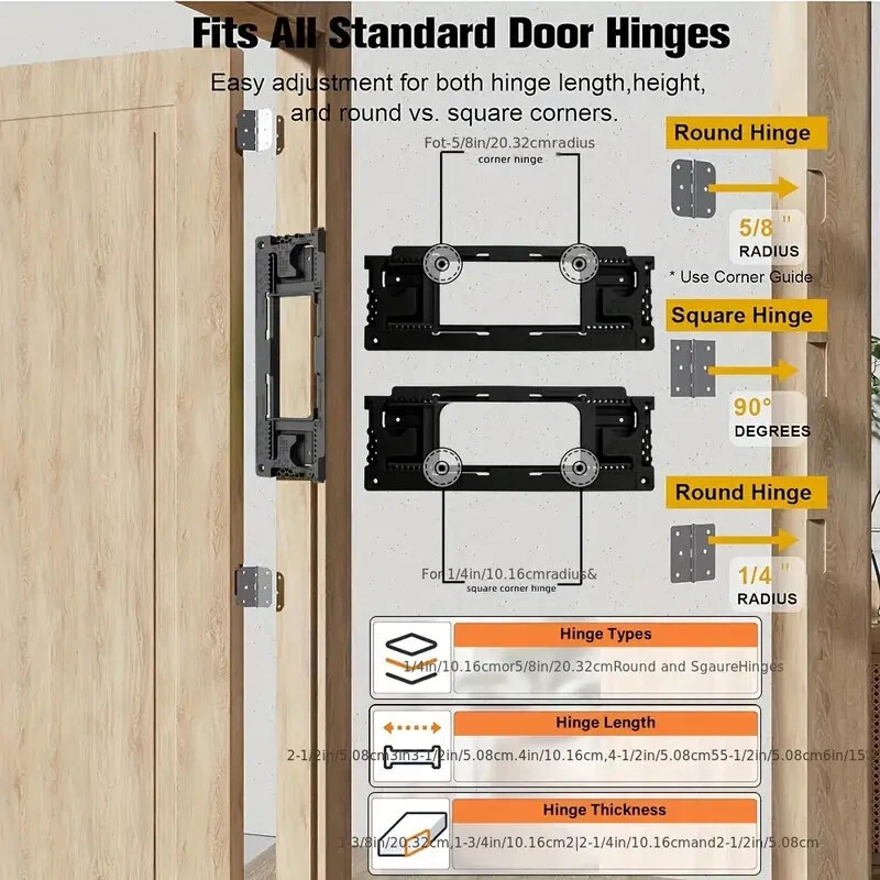 Polished Plastic Hinge Router Template Kit Adjustable for 2-1/2 to 6 Inch Hinges Square and Semidiameter Corners Easy Installation Sturdy Finish Industrial Hardware Tool