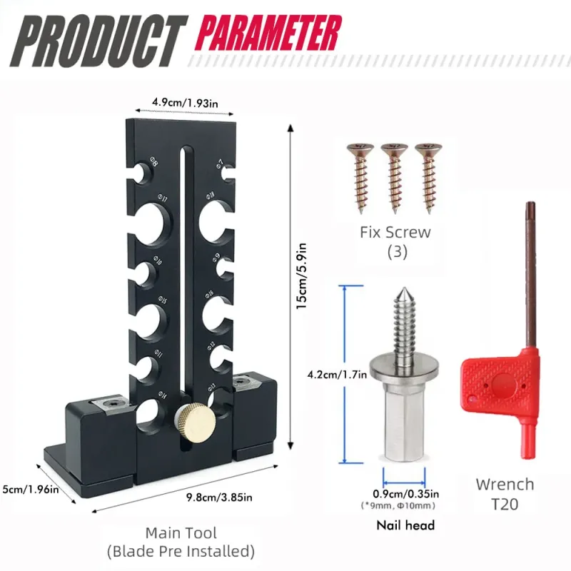 Woodworking Adjustable Dowel Maker Jig 7mm-18mm Carbide Blade Double-edged Cutting Aluminum Alloy Electric Drill Milling Tool
