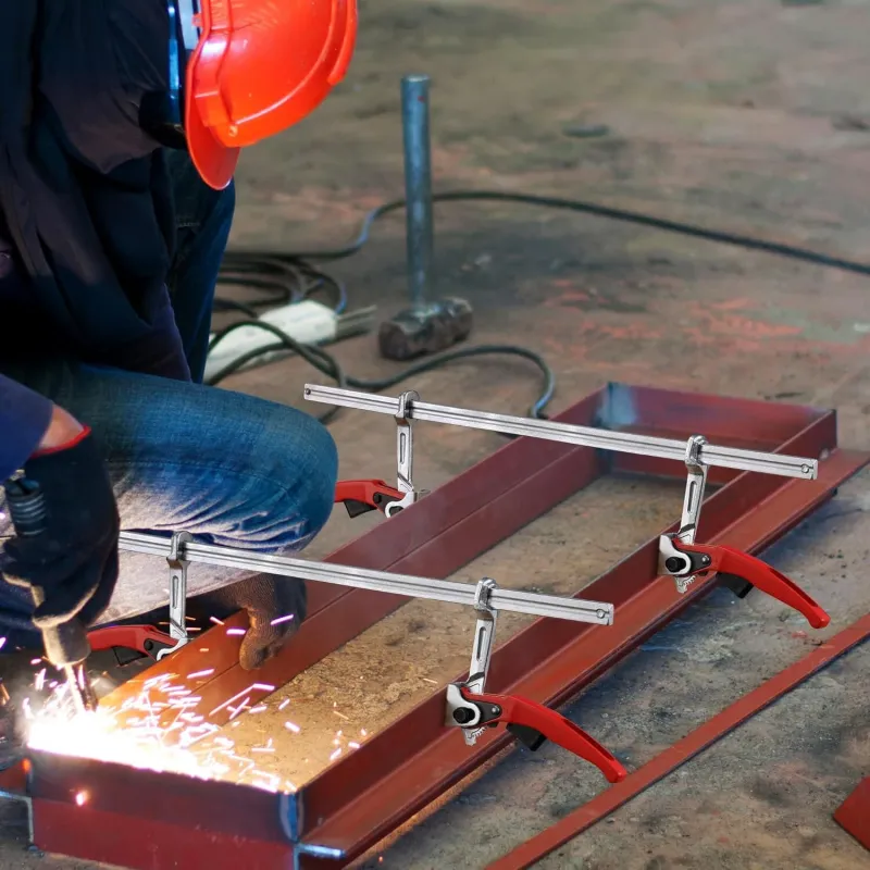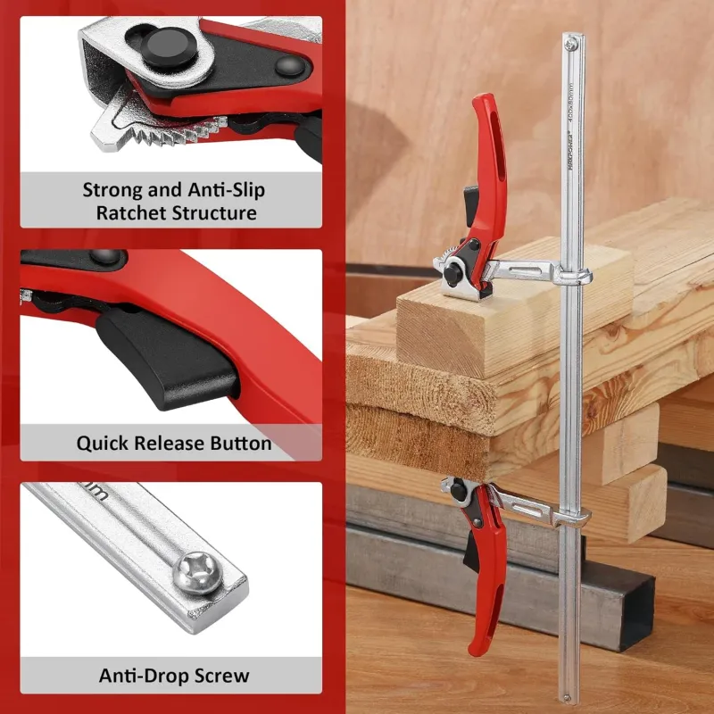 Ratcheting F Clamp Heavy Duty Black Steel Shaft 705 lbs Clamping Force 15 3/4 Inch Opening Capacity Sliding Limbs for Welding Woodworking Metalworking