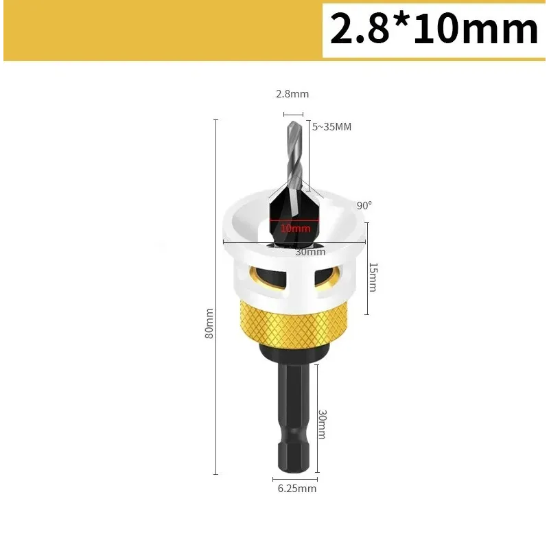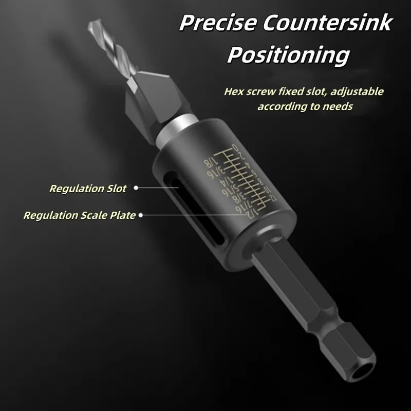 4-in-1 Countersink Drill Bit Set with Low Friction Depth Stop 6.25mm Shank Tungsten Steel Drill Bits 2.8mm 3.2mm 3.5mm 4.0mm Drill Bits for Woodworking Metalworking