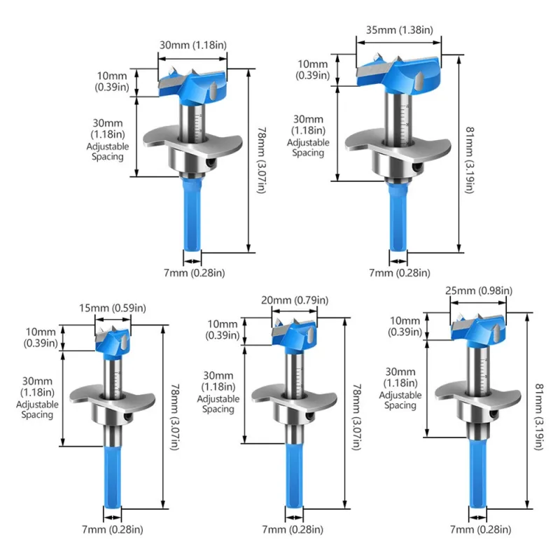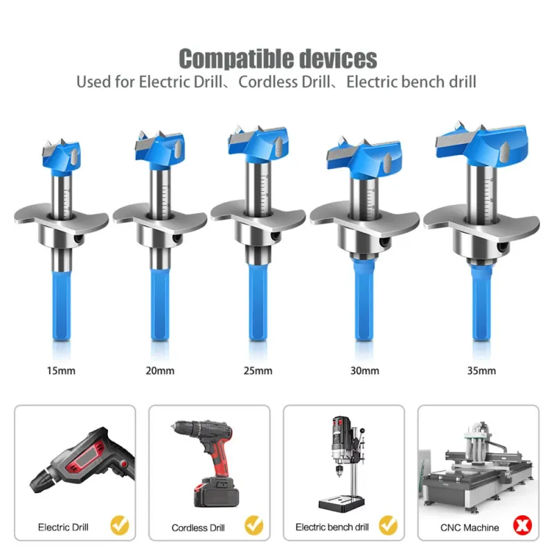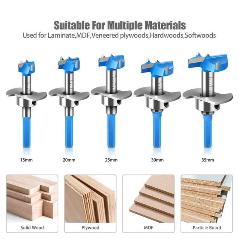 5PCS Hex Shank Hinge Boring Forstner Drill Bit Set Countersink Bit 15-35mm Cutting Diameter Hole Opener Hinge Hole Cutter for Woodworking / Plastic / Plywood