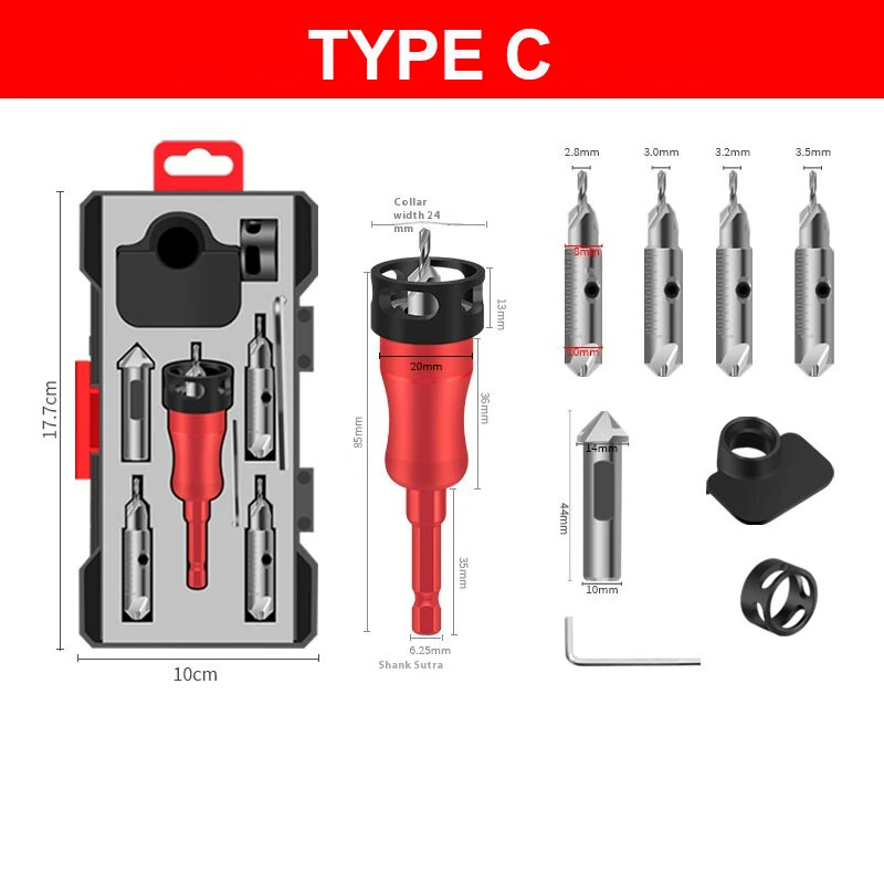 Countersink Drill Bit 3-in-1 Aluminum Alloy Body High Speed Steel Blades Adjustable 90 Degree Precision Universal Hex Shank for Wood Aluminum Craftsmanship Tools